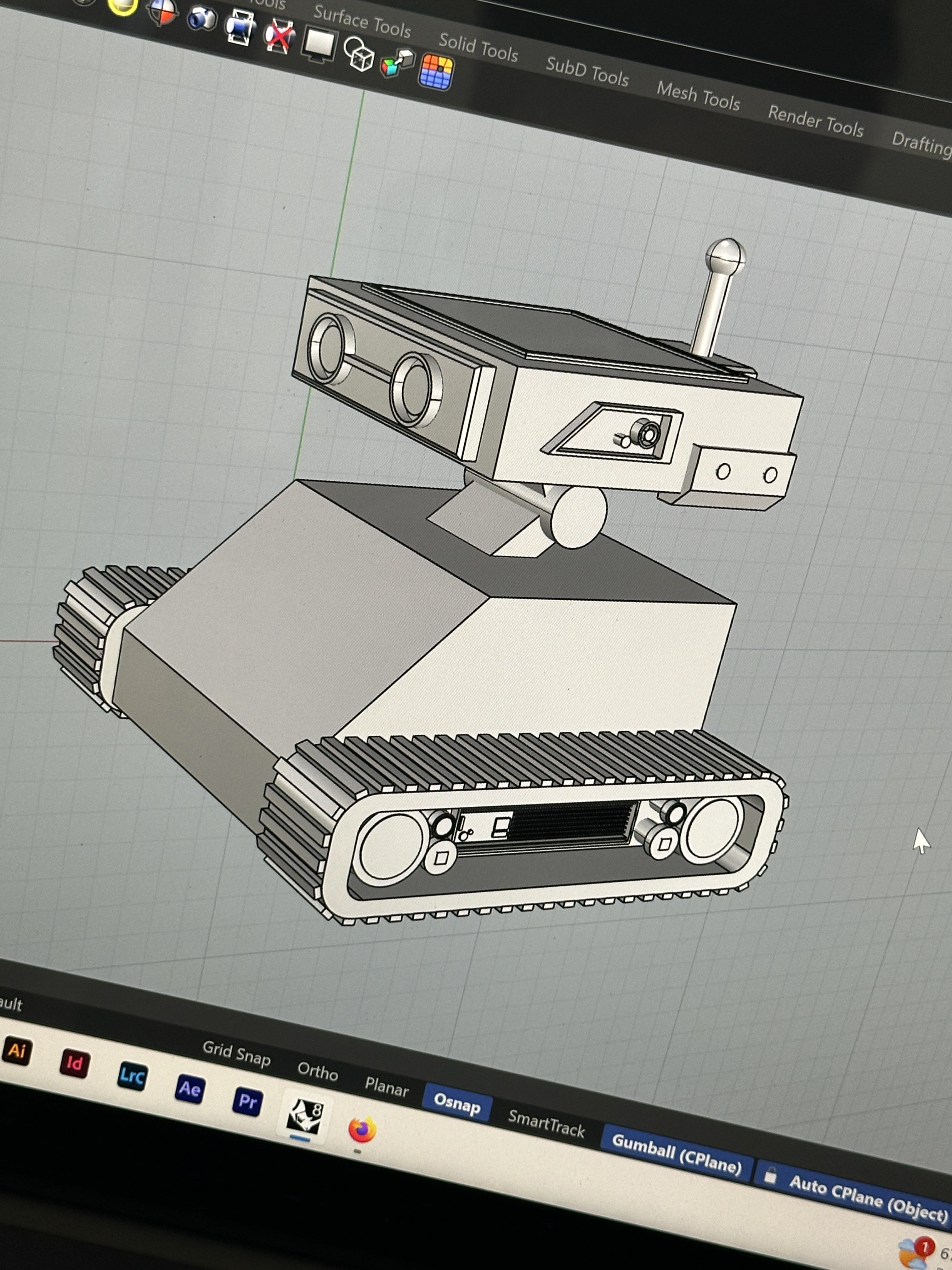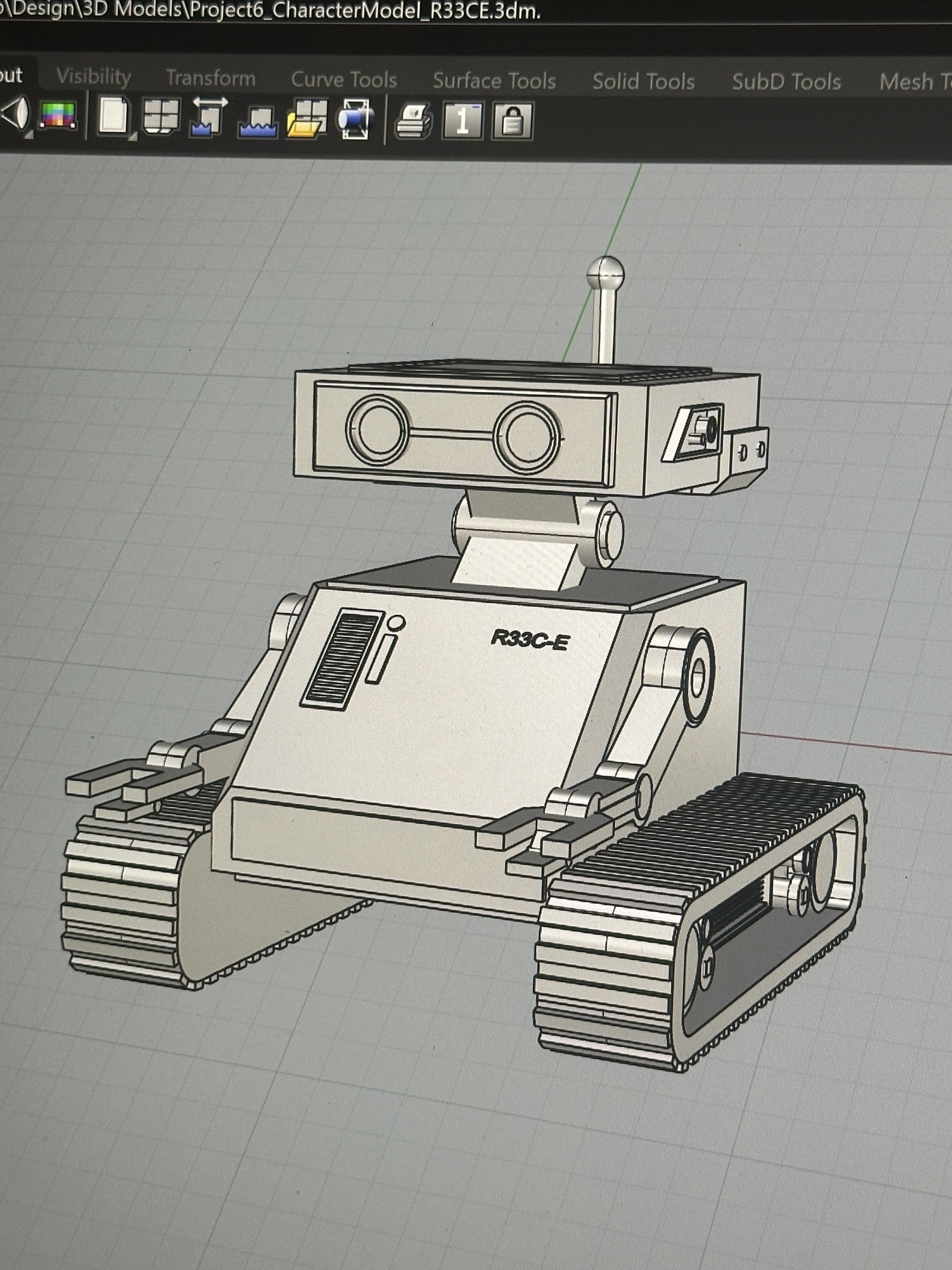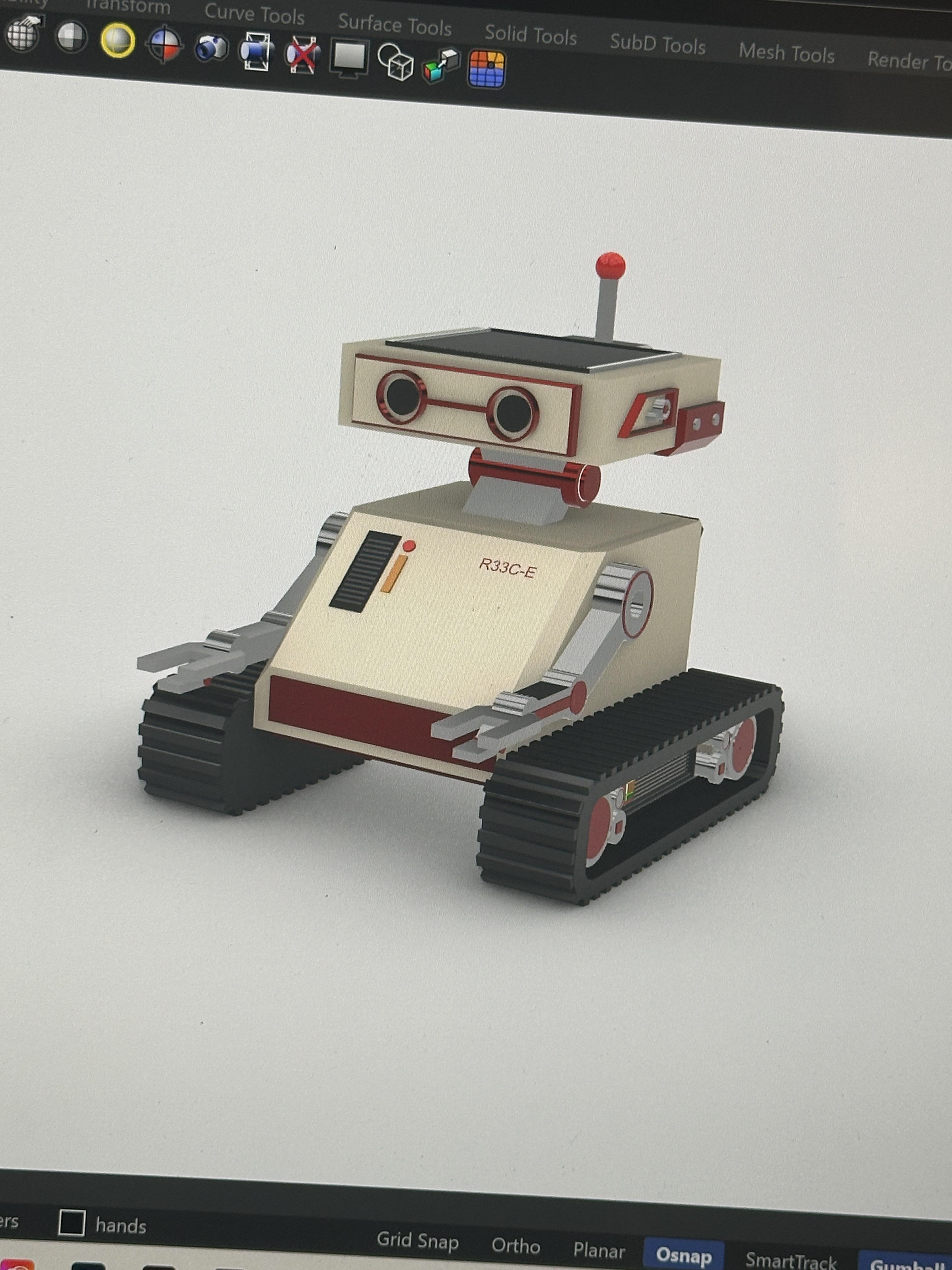 3D MODELING: The next step was to translate my sketches into a 3D model in Rhinoceros 3D. In the modeling process, the robot underwent a few minor design changes for aesthetic purposes.