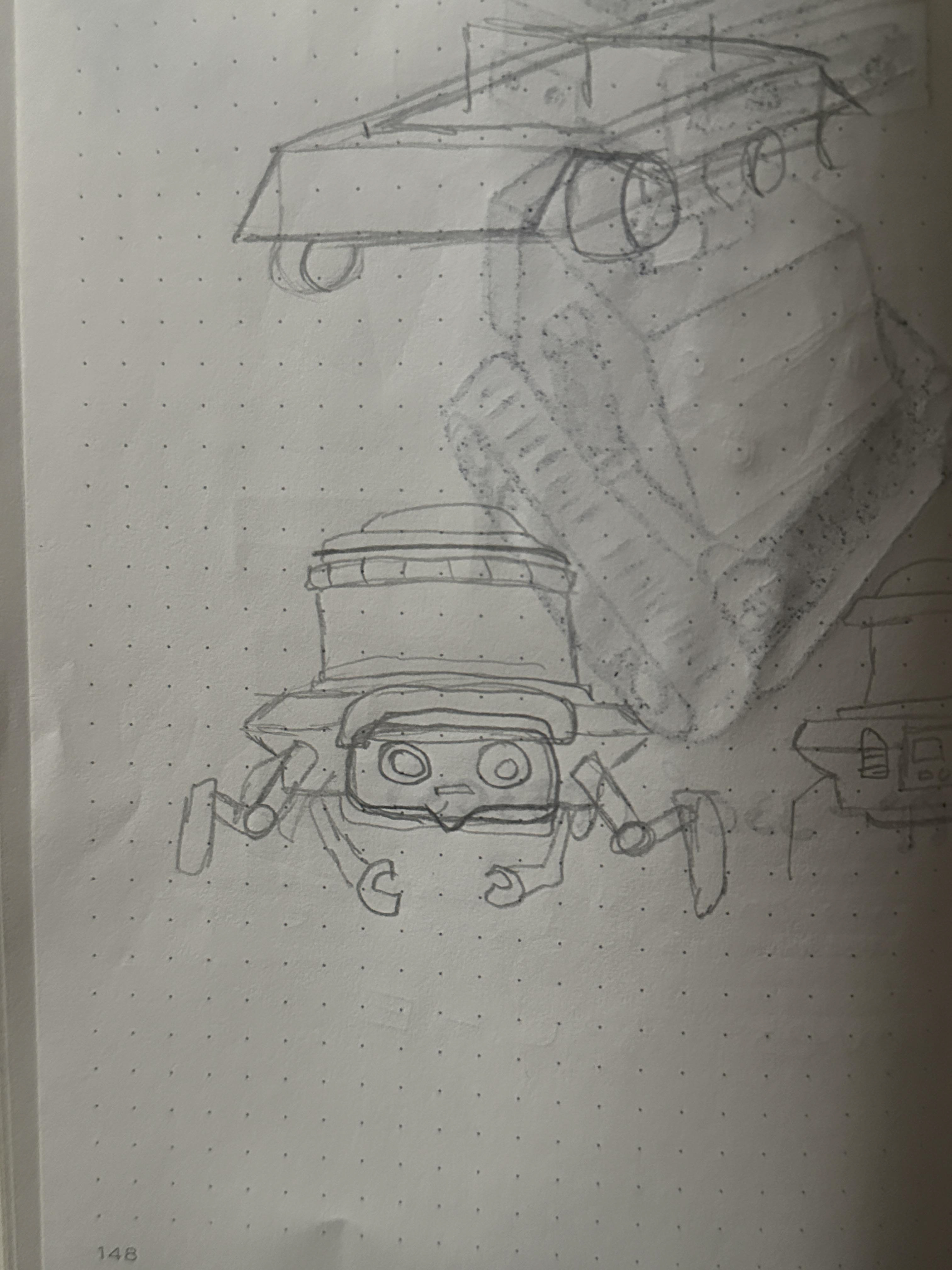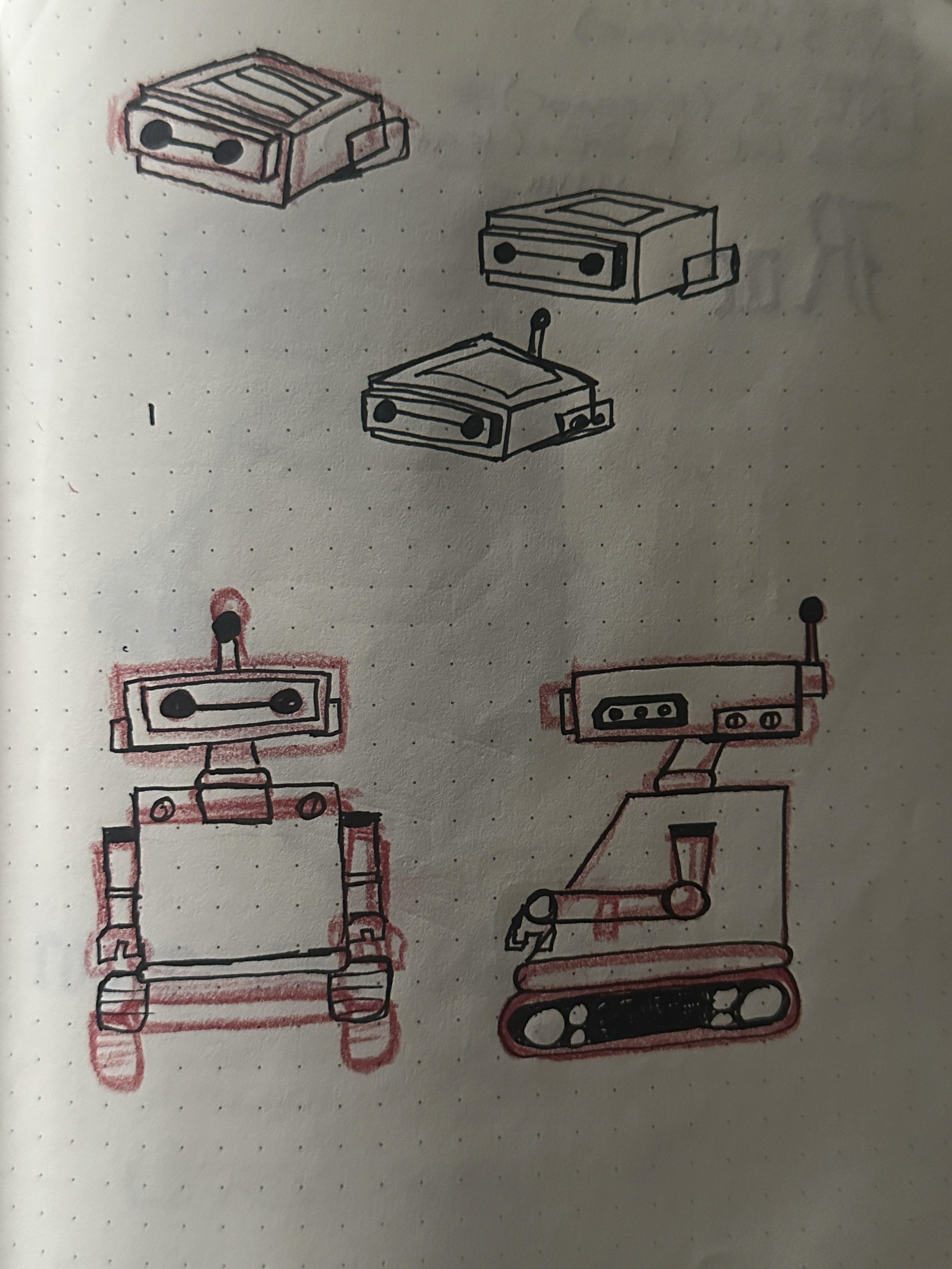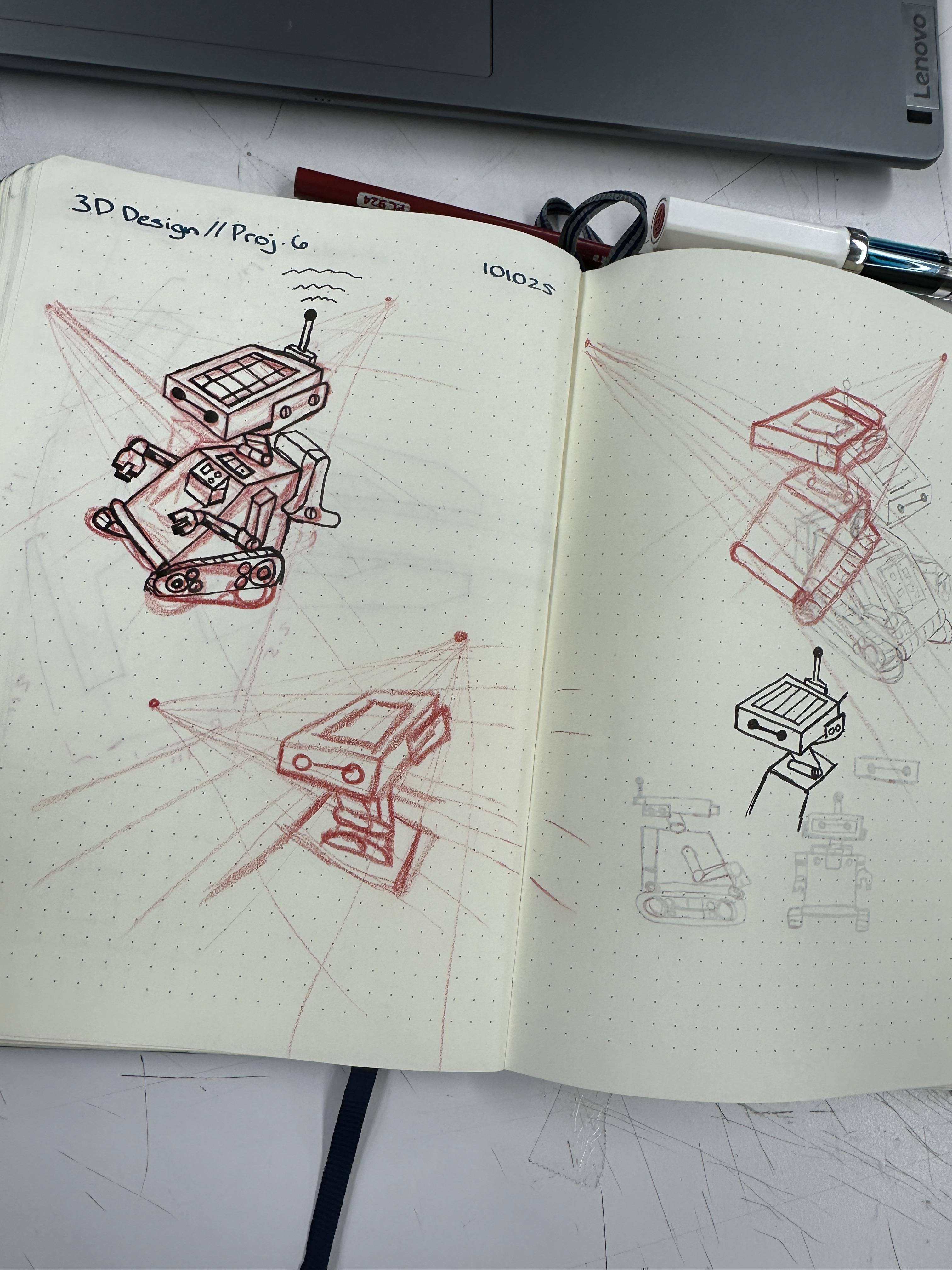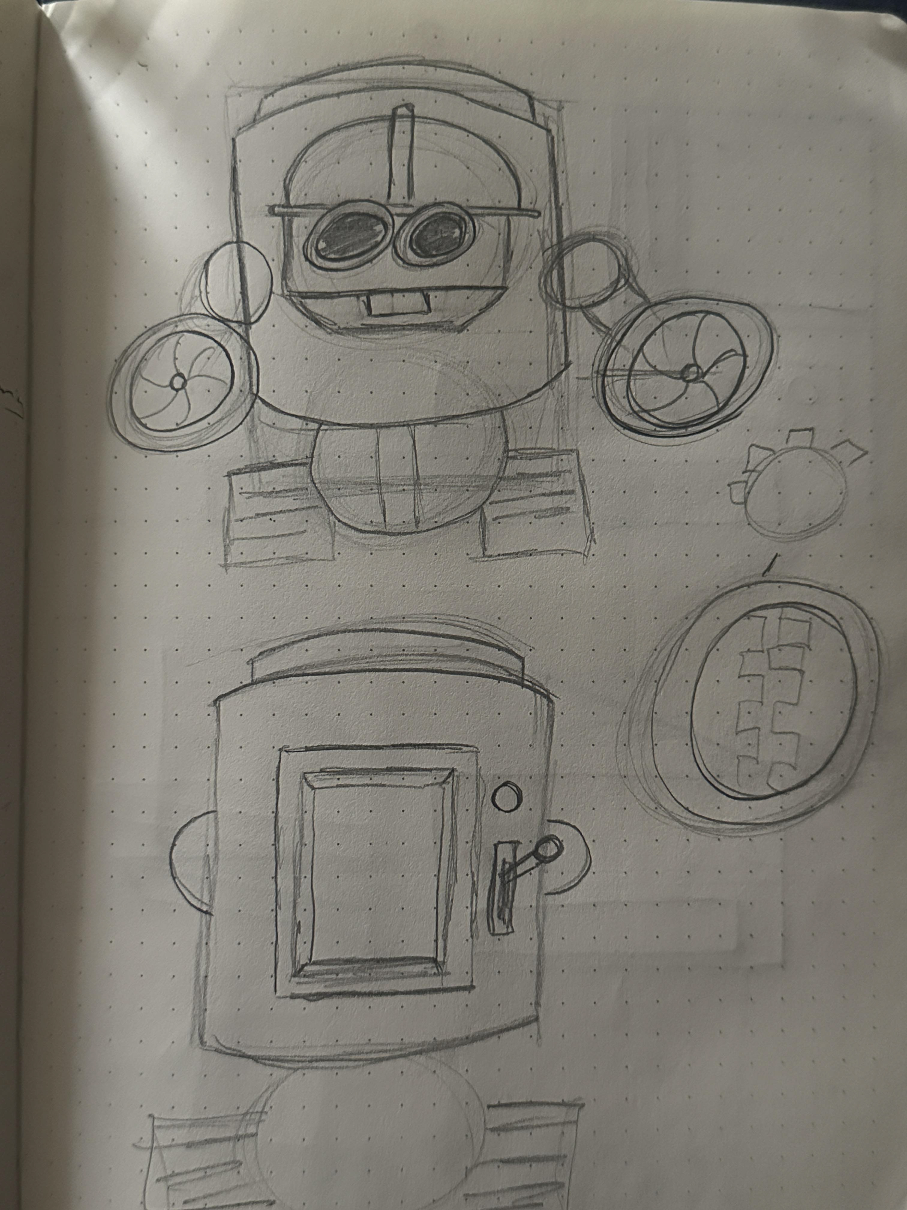 THE NEXT SET OF ROBOTS: The following are sketches of the other two robots that were created, as well as their 3D models.